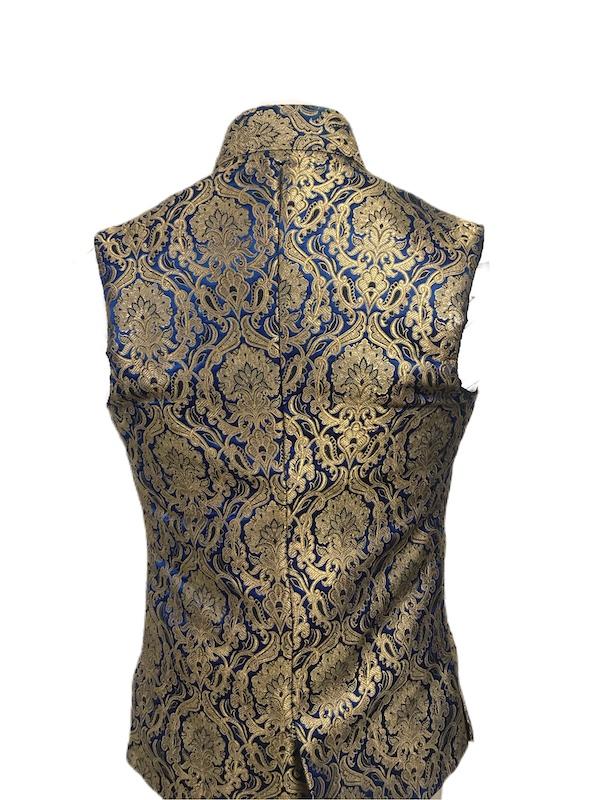 Royal Blue/Gold Damask Brocade Asymmetric Waistcoat.