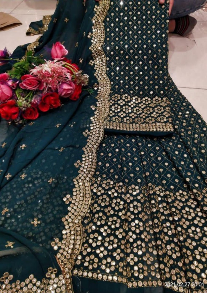 Featuring a Maroon Palazzo Suit with gold motif accompanied by a matching dupatta. Slight color variation may occur due to photographic reasons.