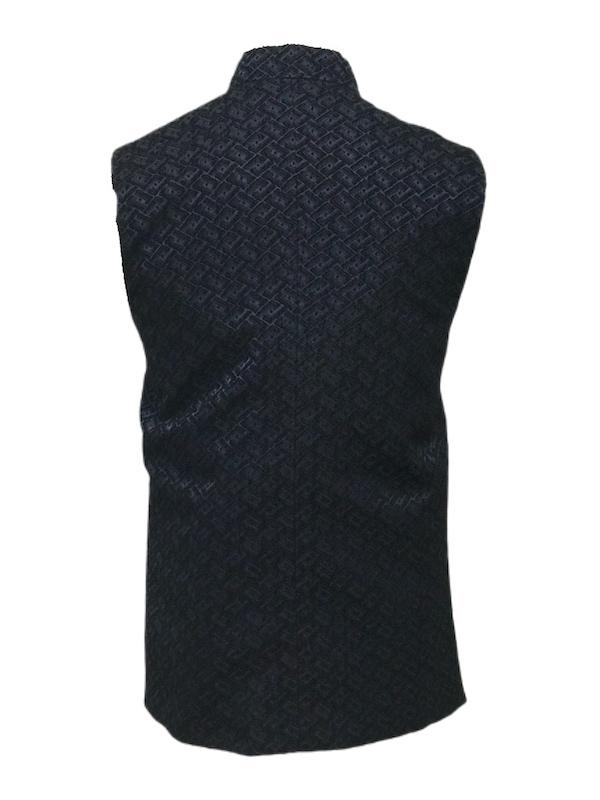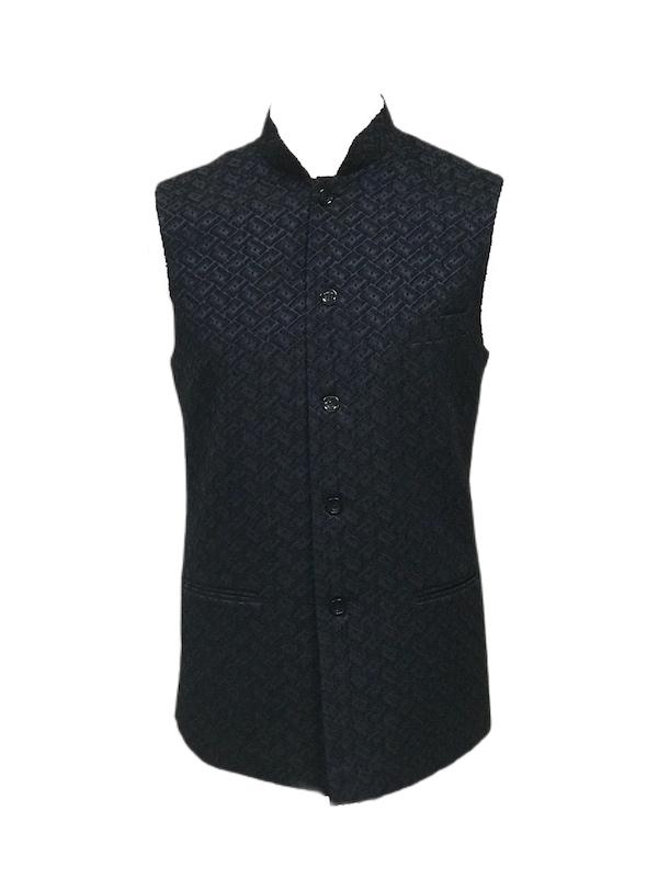 Navy Blue Traditional Pakistani Embroidered Nehru Waistcoat with black buttons.